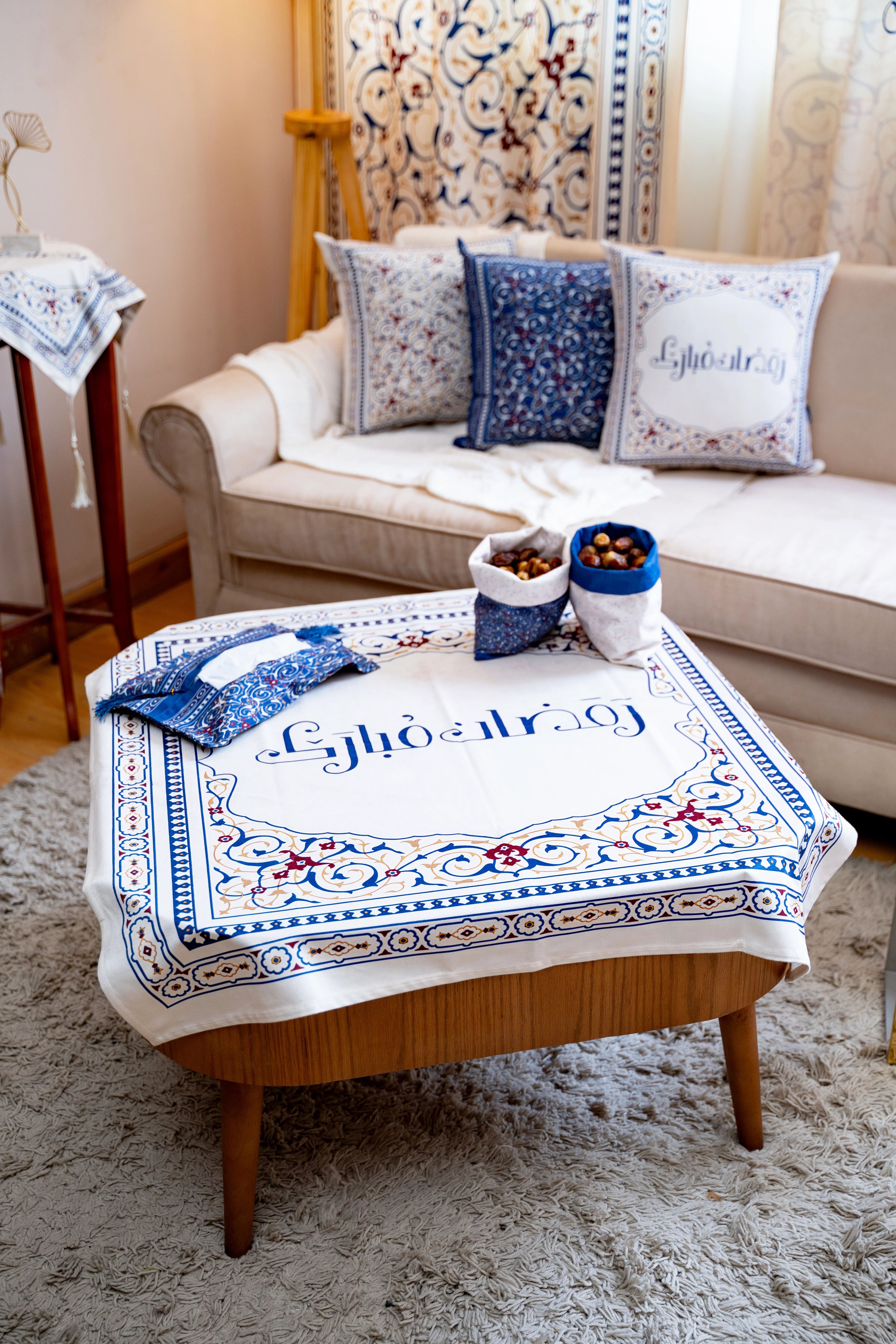 Dark Blue Floral Islamic Ornaments Ramadan Reception Set