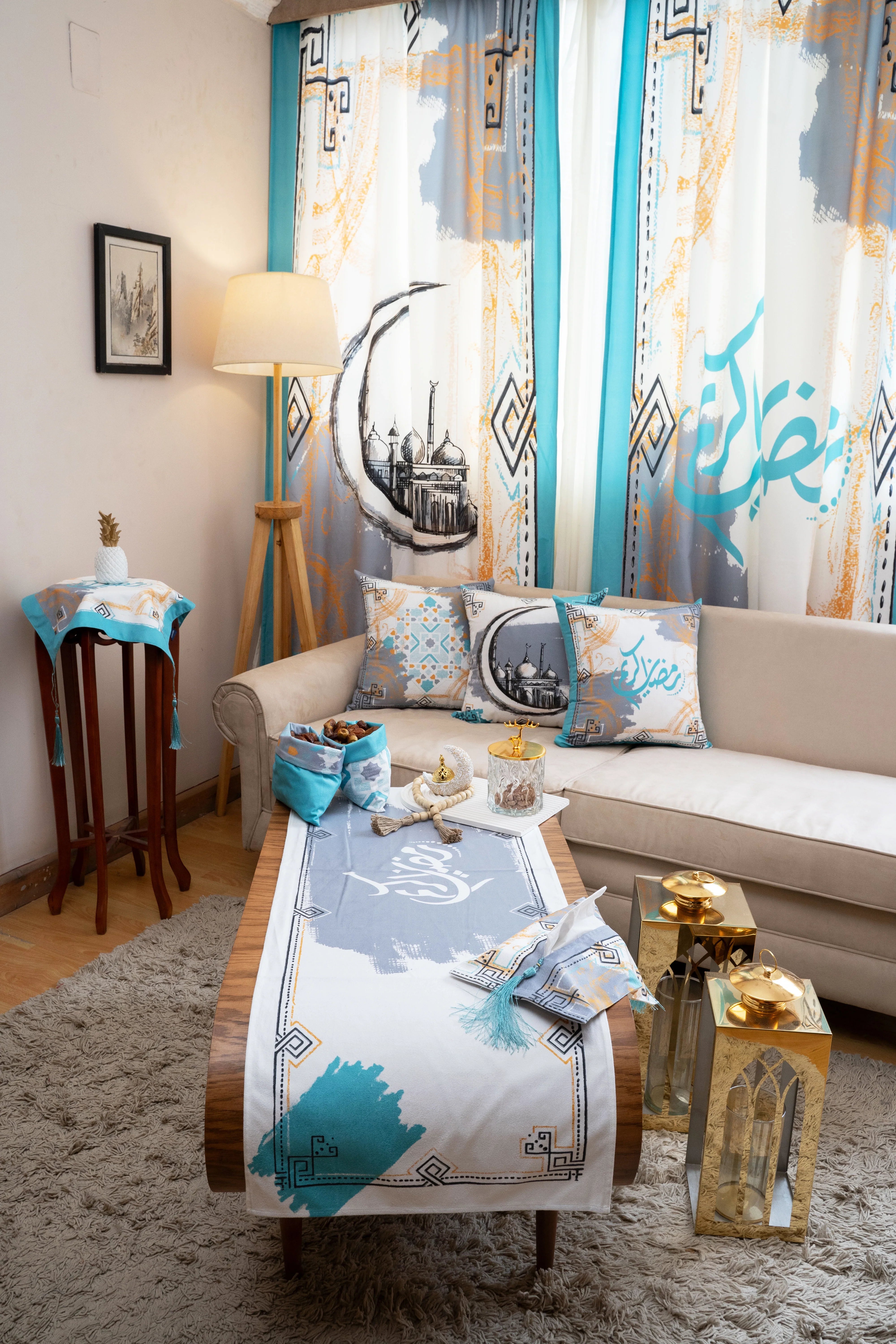 Turquoise Sketched Mosque Ramadan Reception Set
