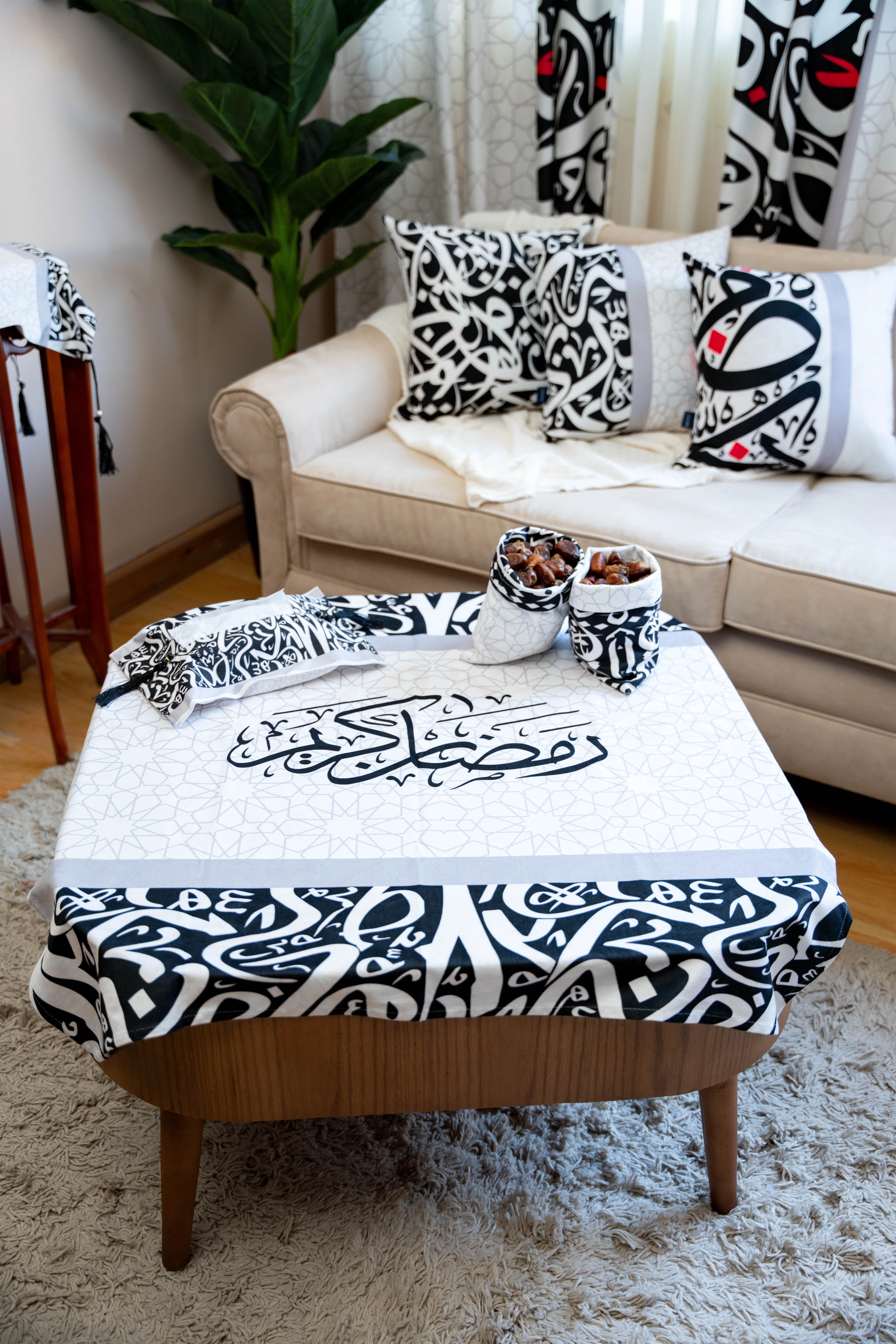 Our elegant and modern Ramadan Tablecloth designed to fit the largest tables. Ideal for a dining table for 6-8 people.