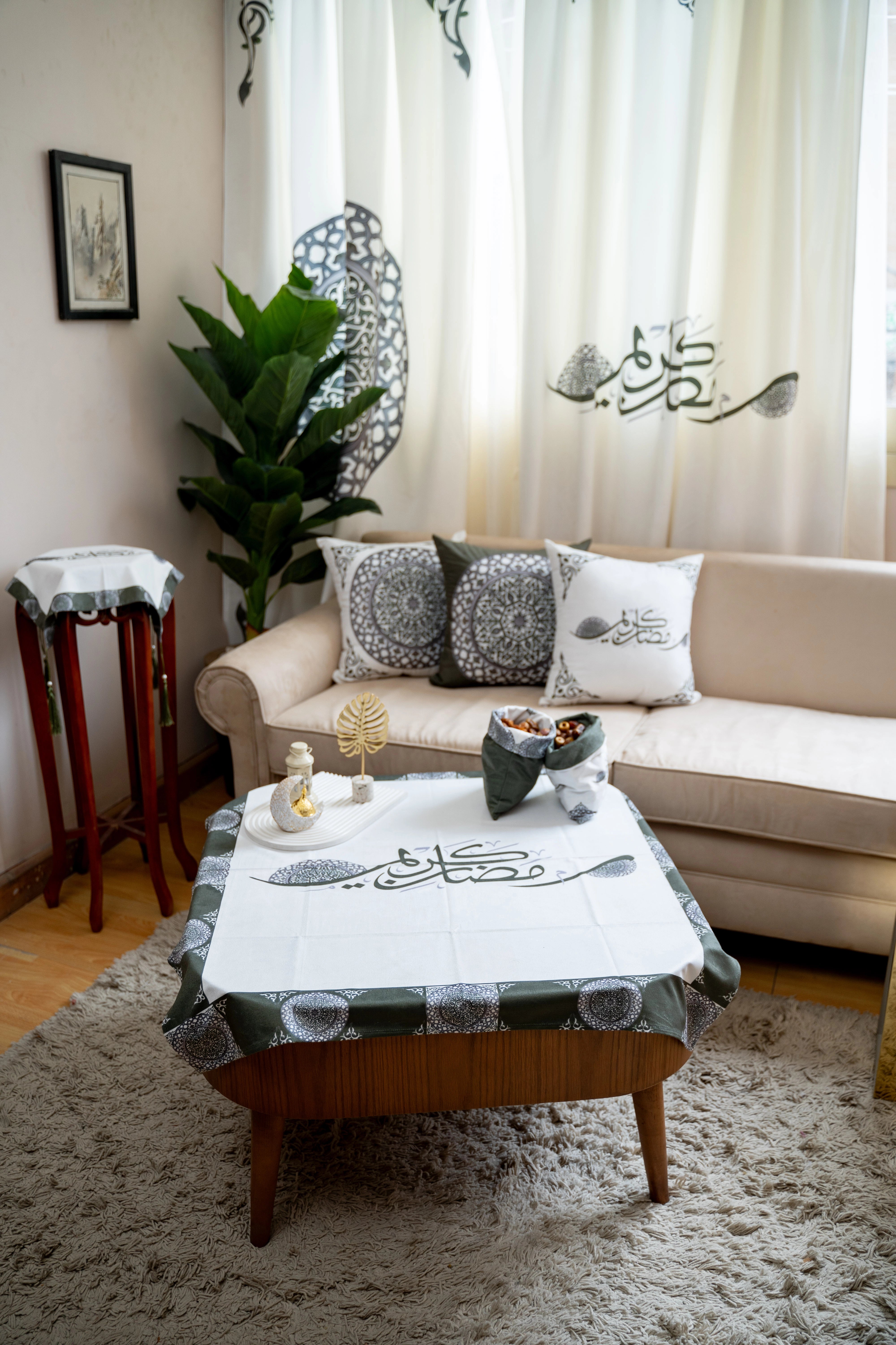 Our elegant and modern Ramadan Tablecloth designed to fit the largest tables. Ideal for a dining table for 6-8 people.