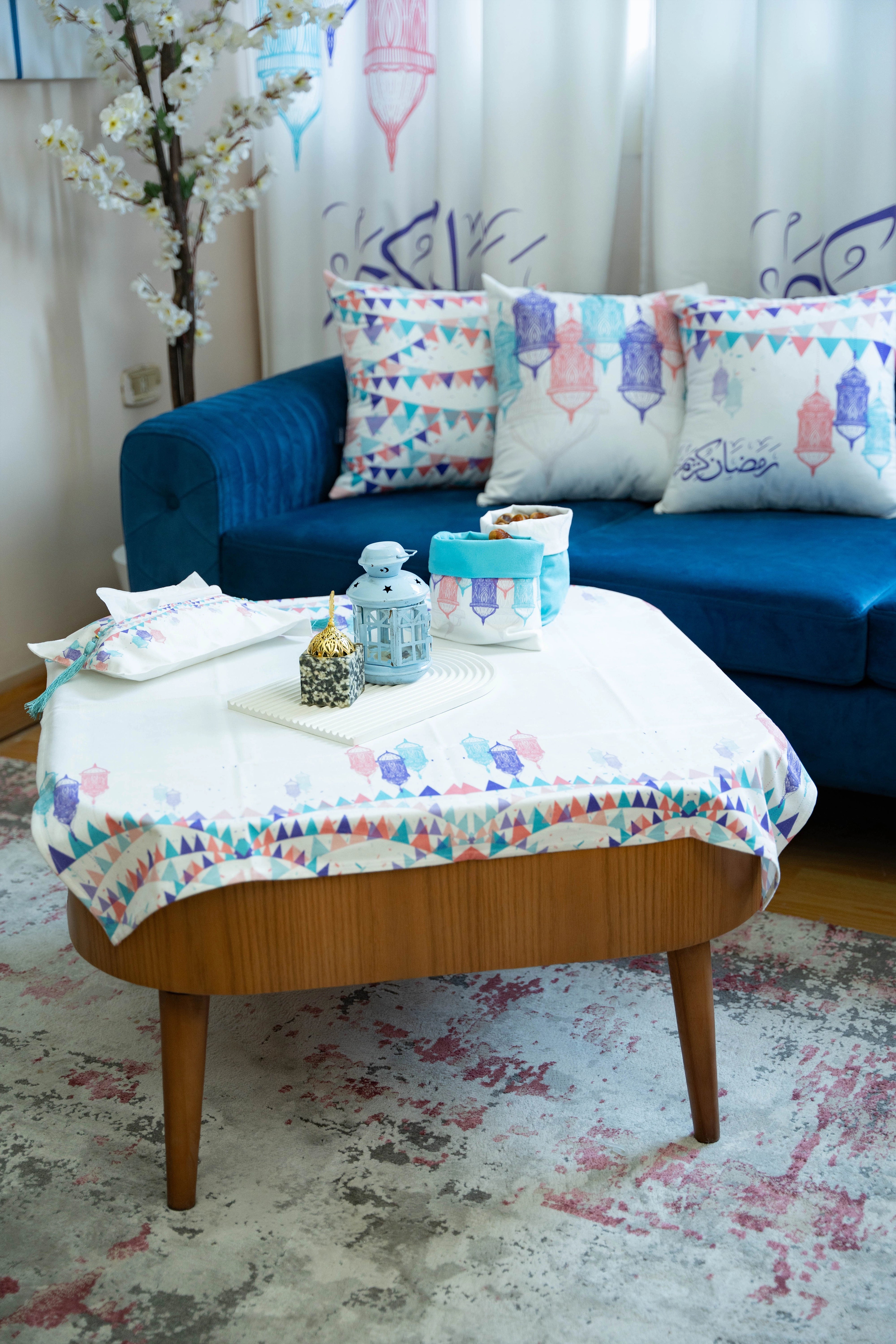 Our elegant and modern Ramadan Tablecloth designed to fit the largest tables. Ideal for a dining table for 6-8 people.