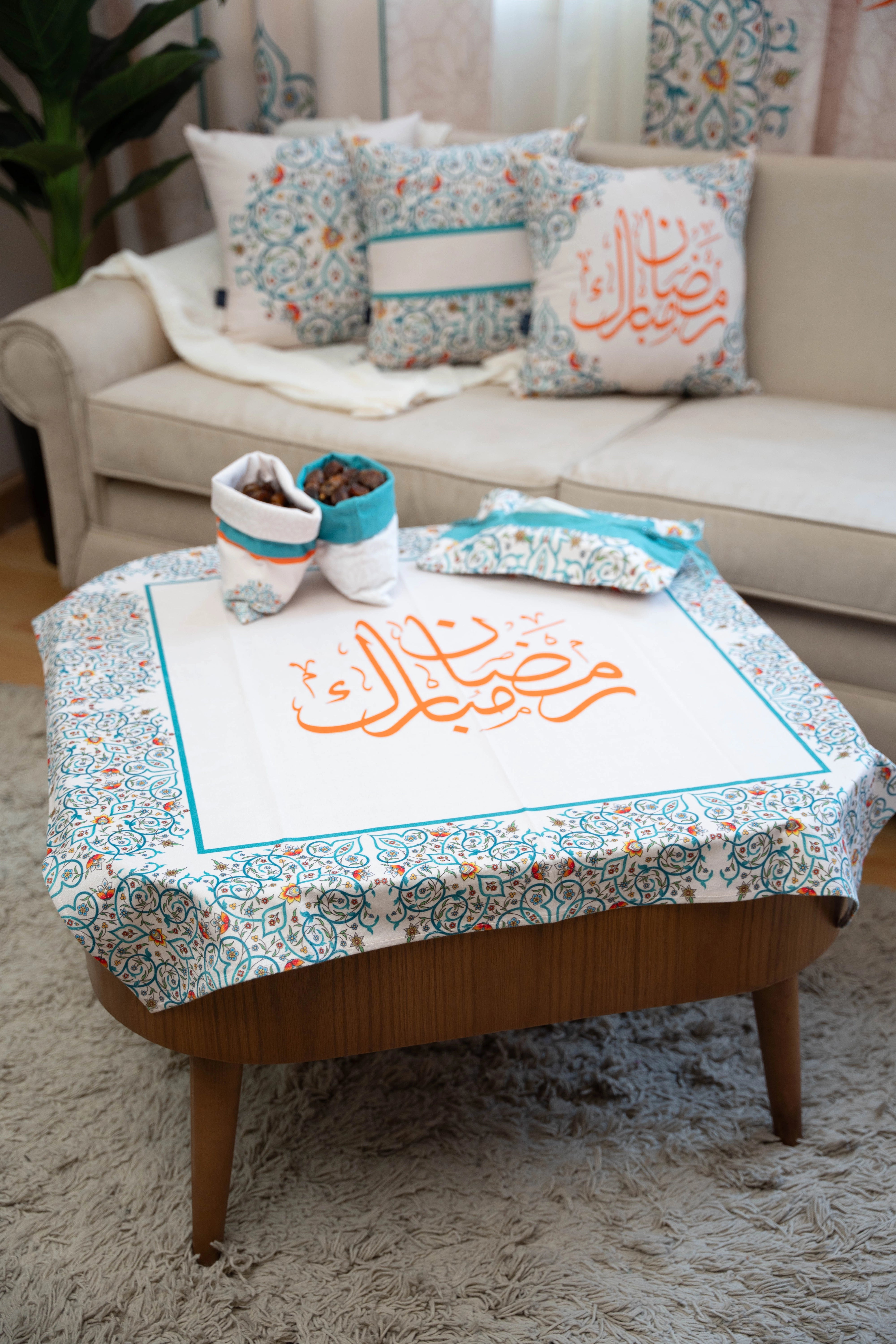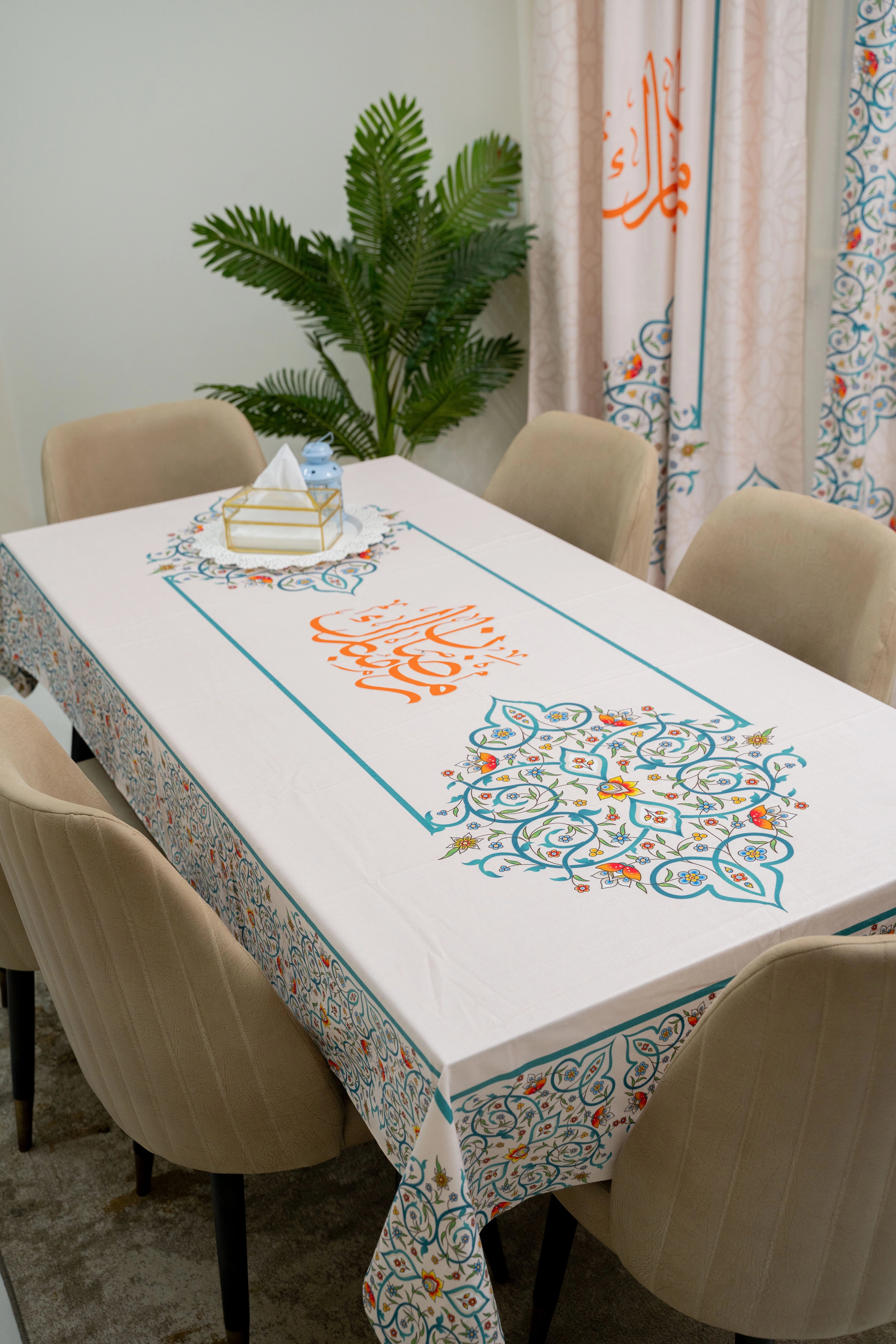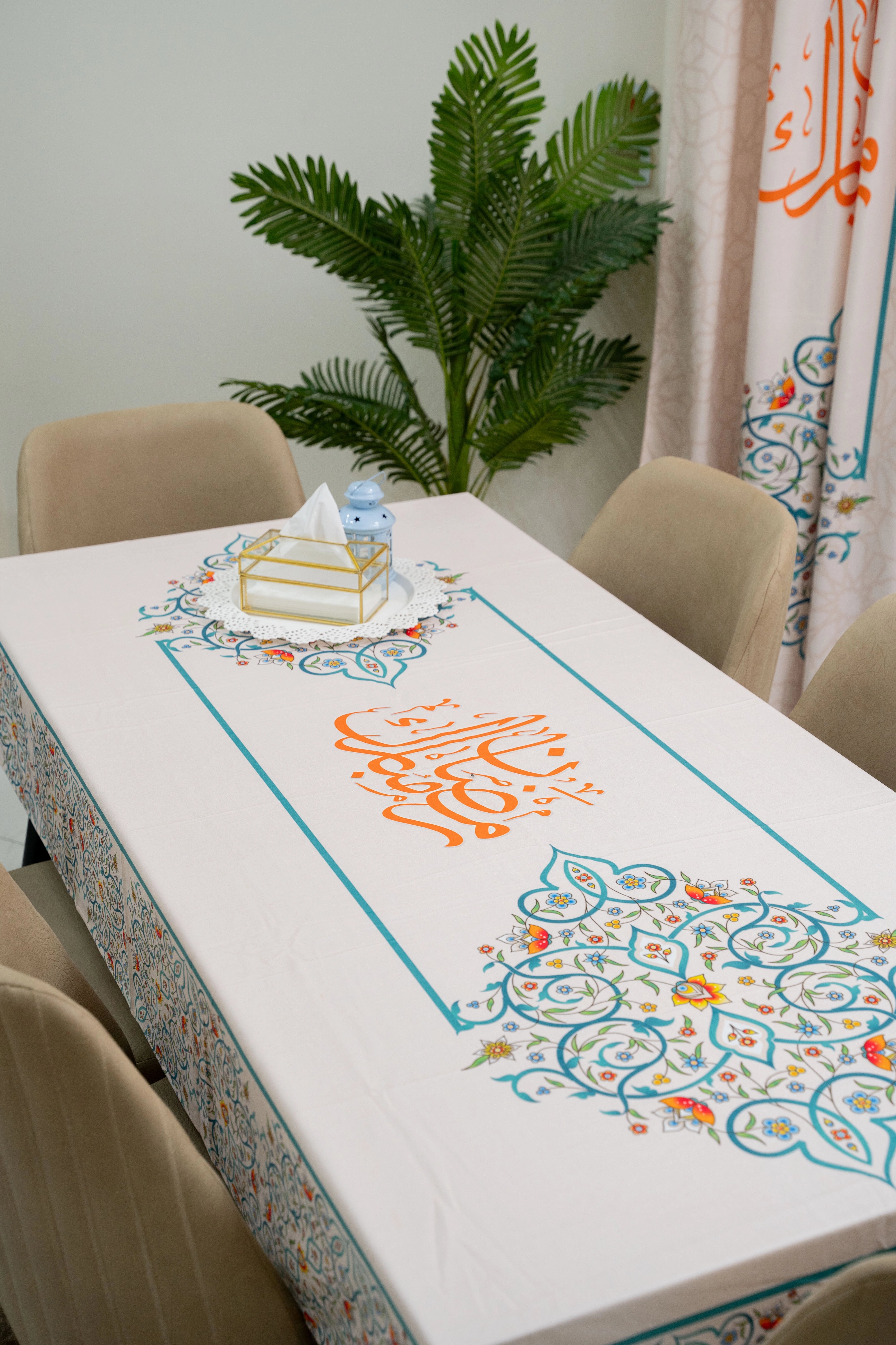 Our elegant and modern Ramadan Tablecloth designed to fit the largest tables. Ideal for a dining table for 6-8 people.