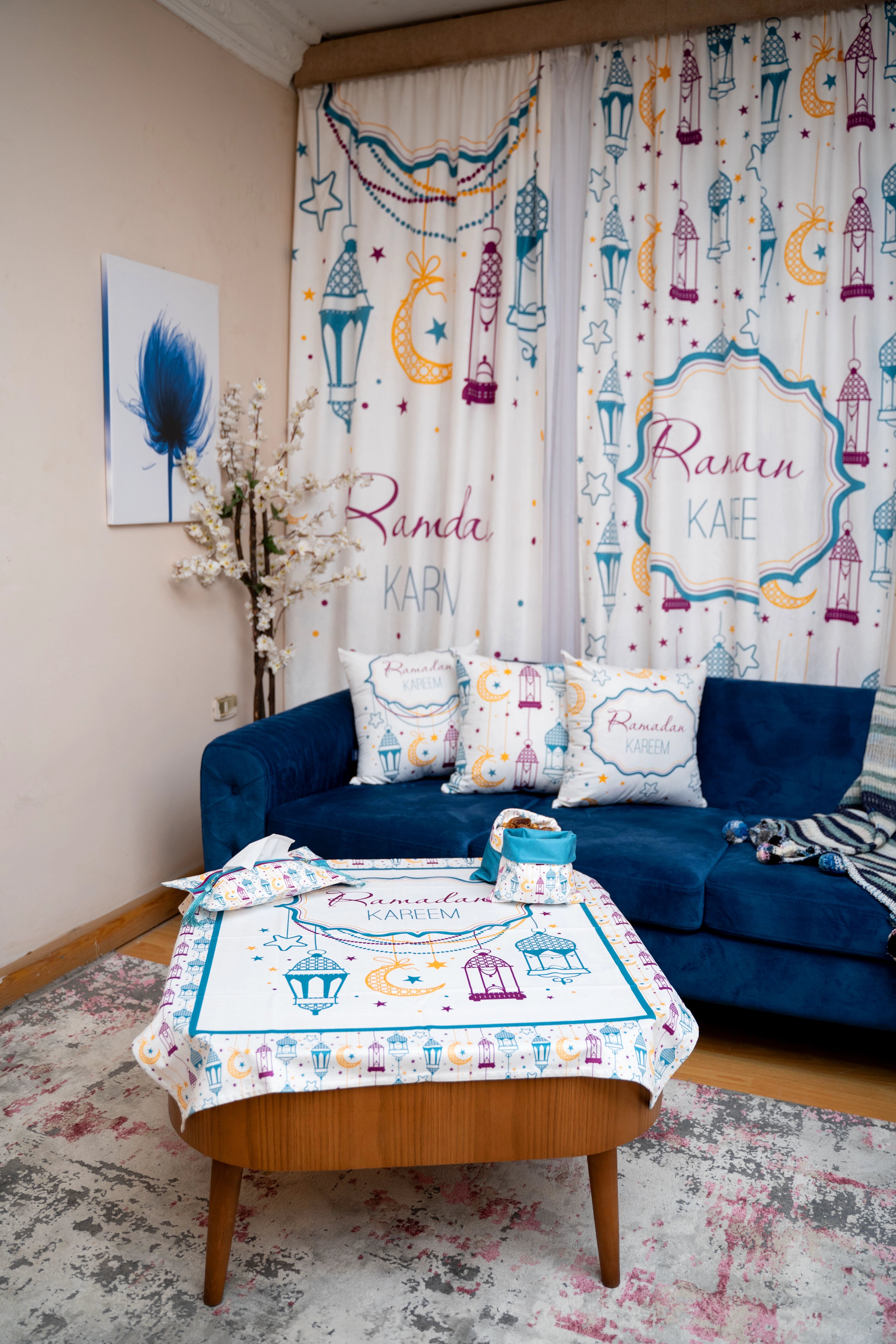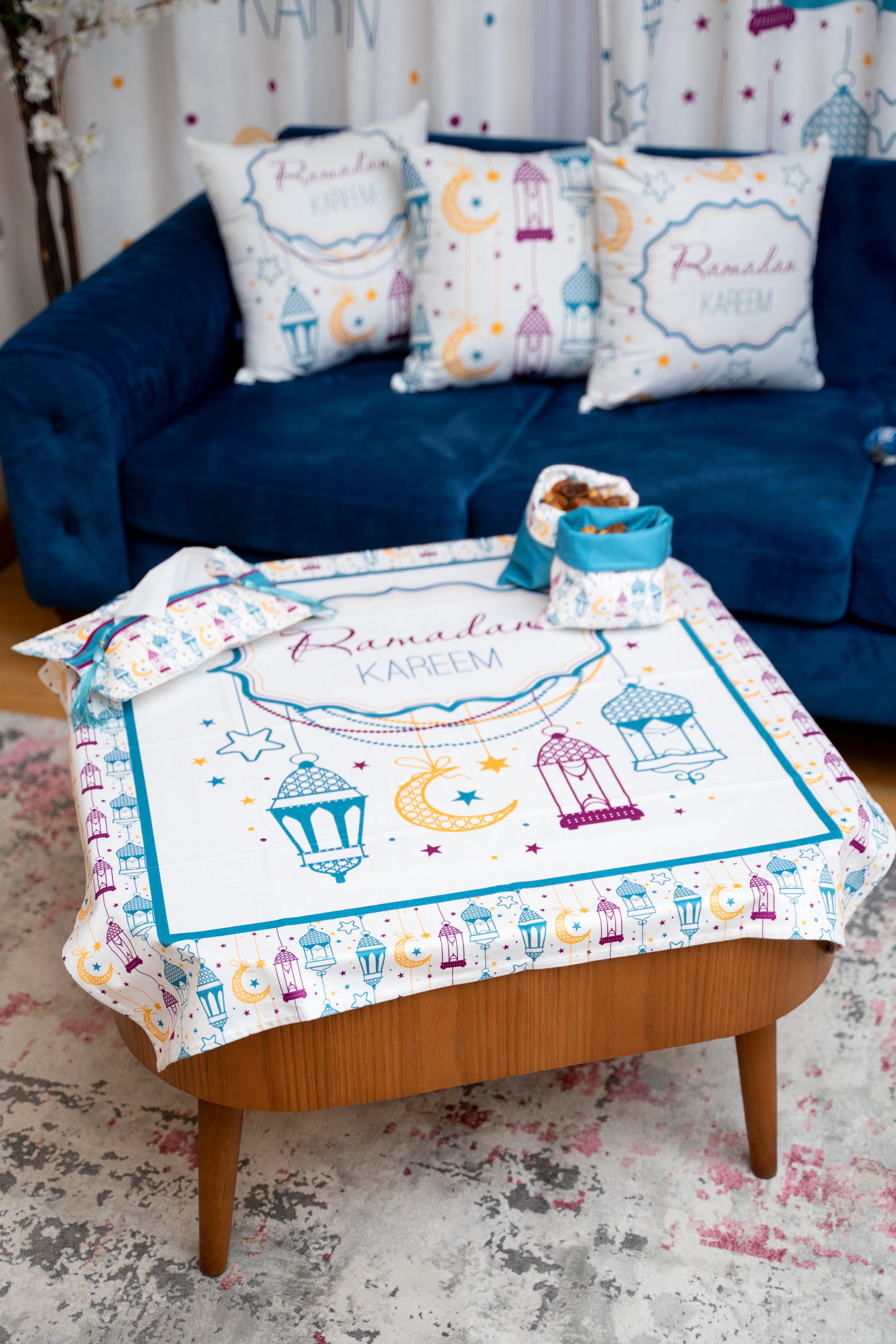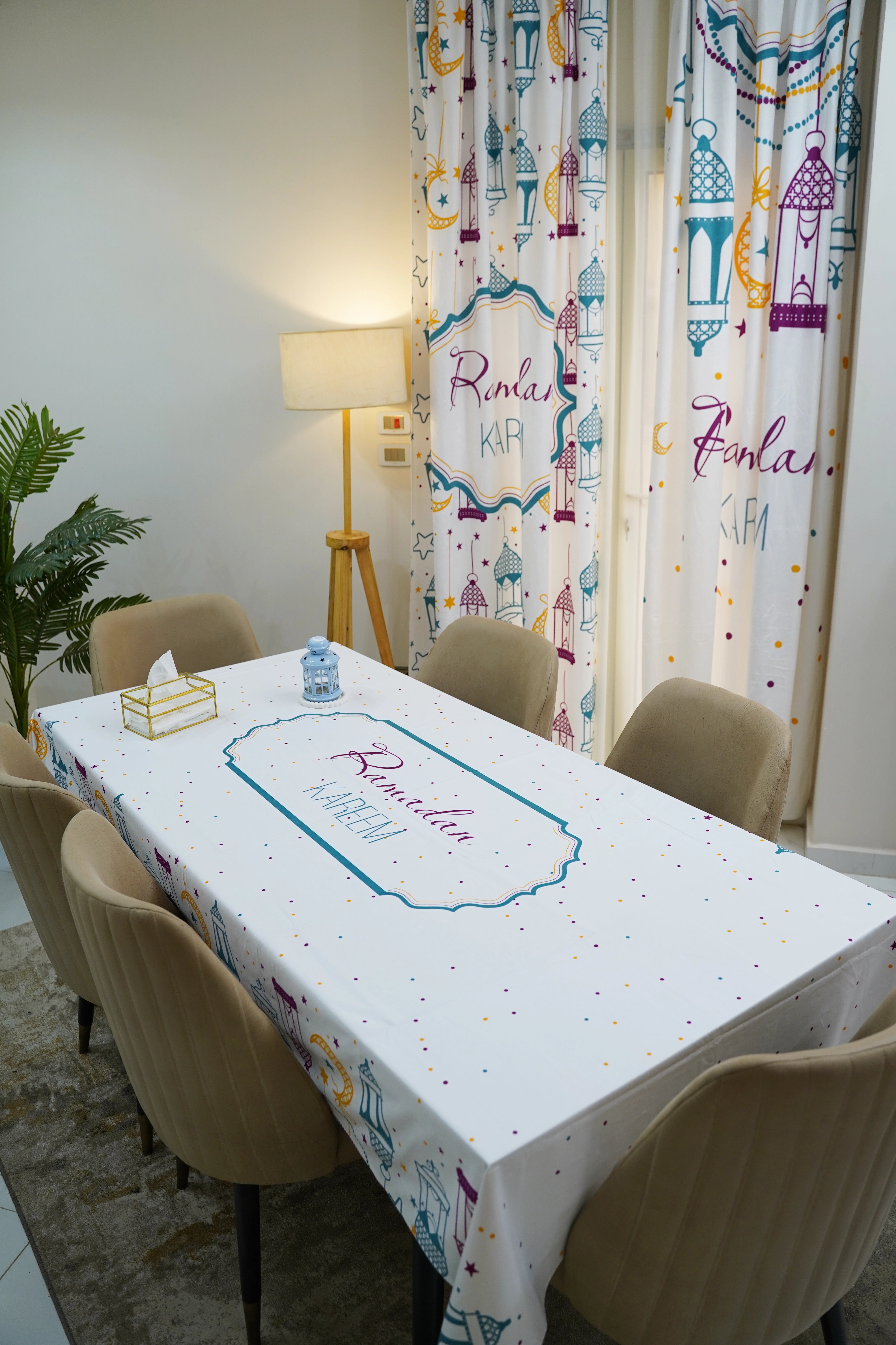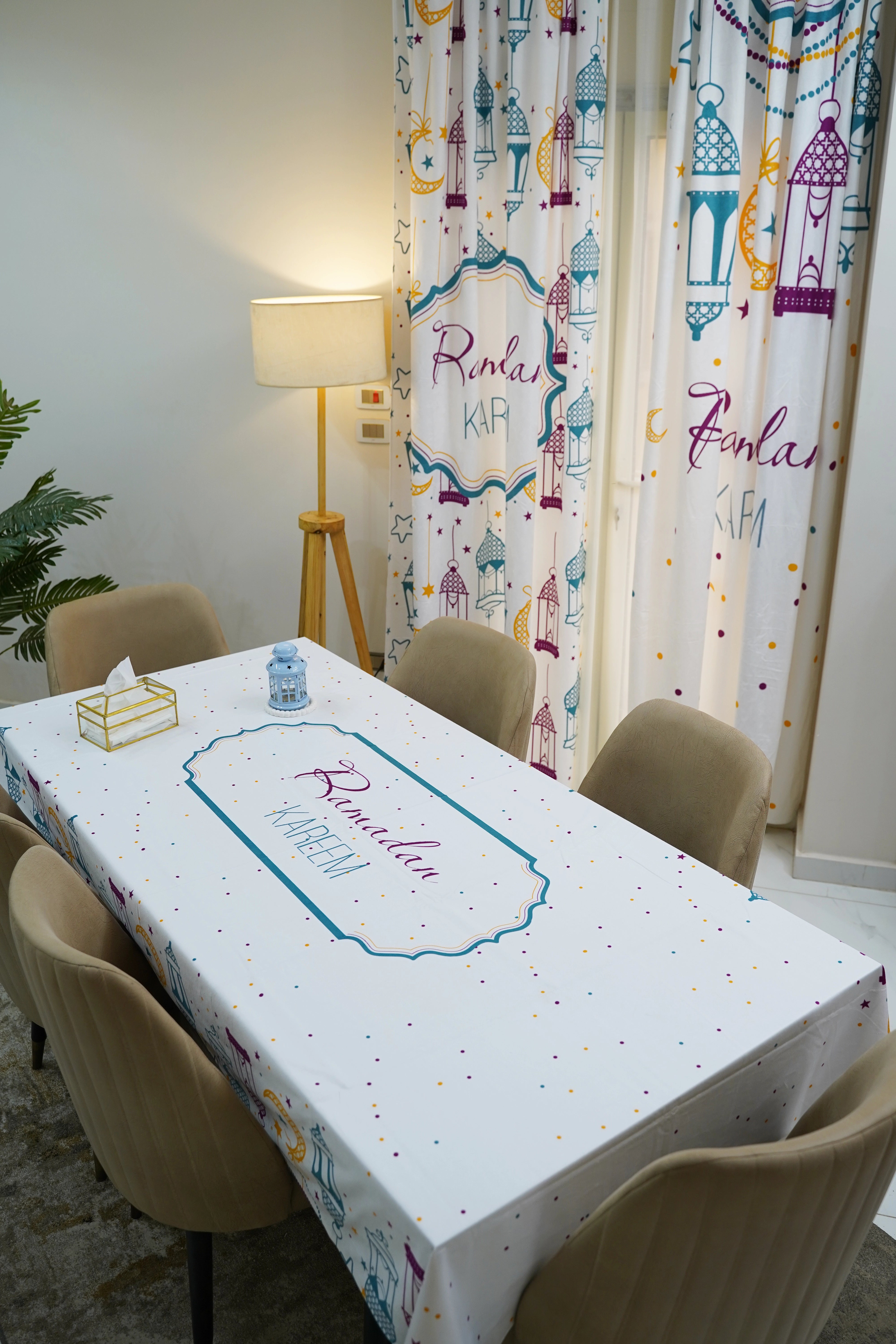 Our elegant and modern Ramadan Tablecloth designed to fit the largest tables. Ideal for a dining table for 6-8 people.