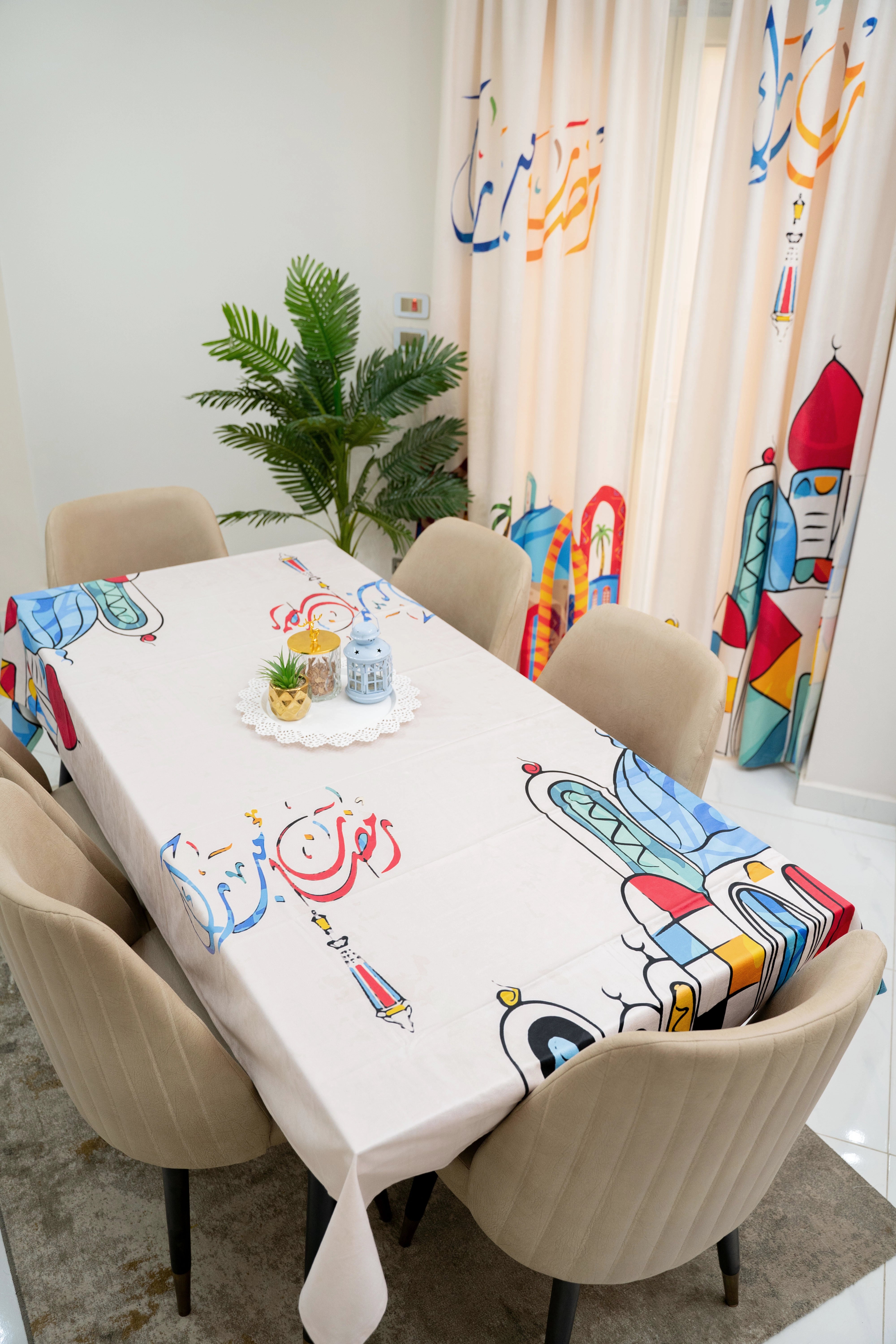 Our elegant and modern Ramadan Tablecloth designed to fit the largest tables. Ideal for a dining table for 6-8 people.