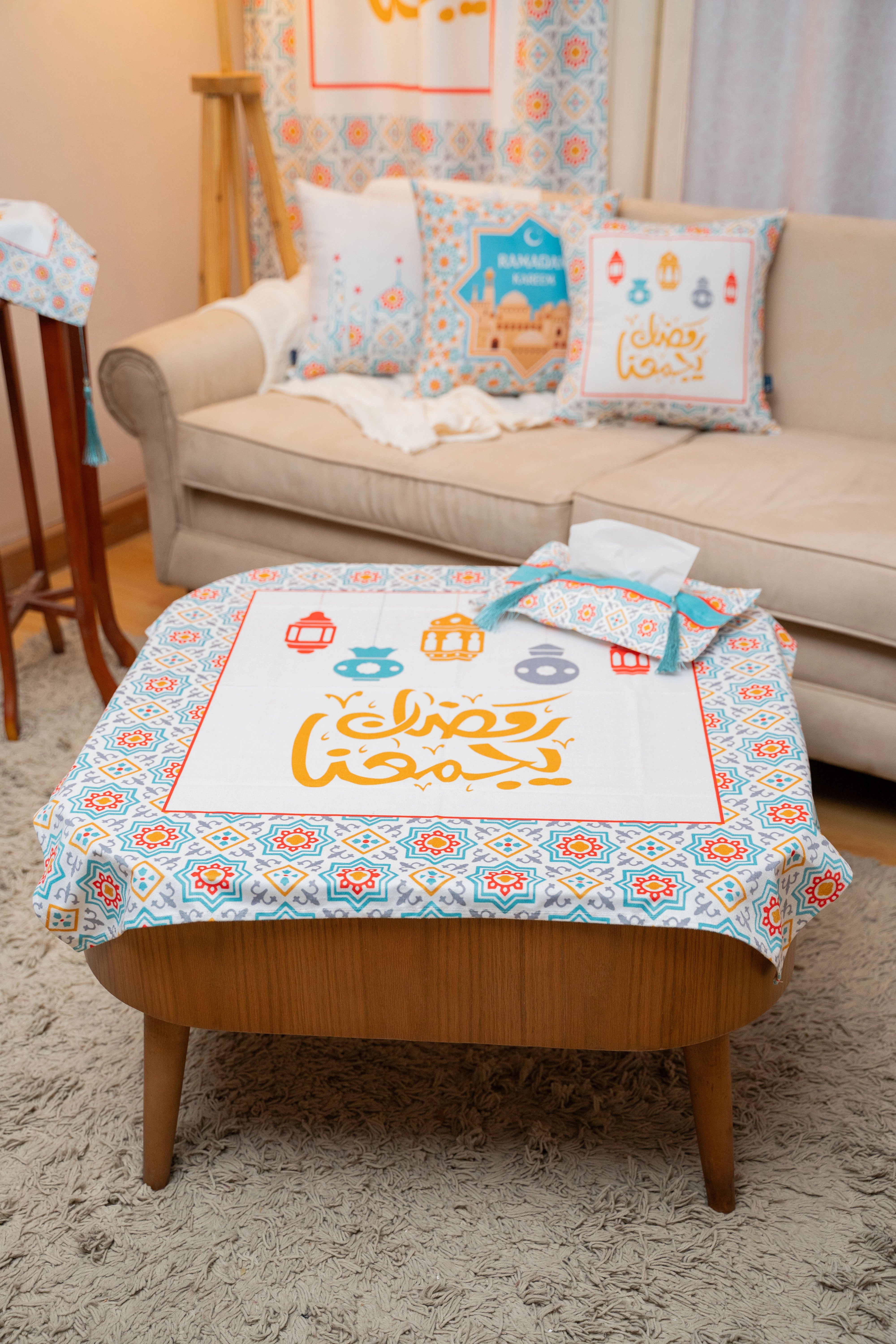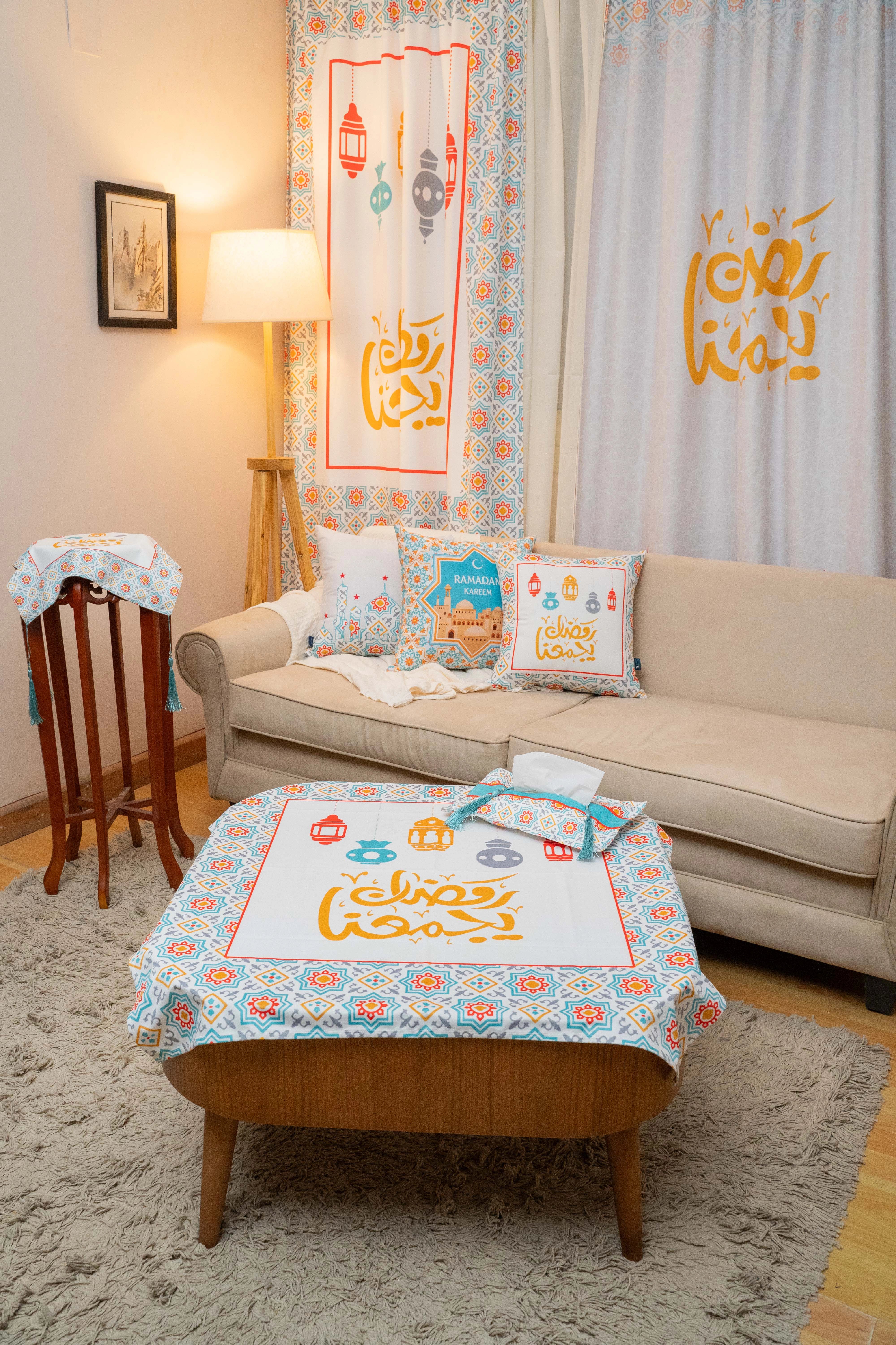 Our elegant and modern Ramadan Tablecloth designed to fit the largest tables. Ideal for a dining table for 6-8 people.