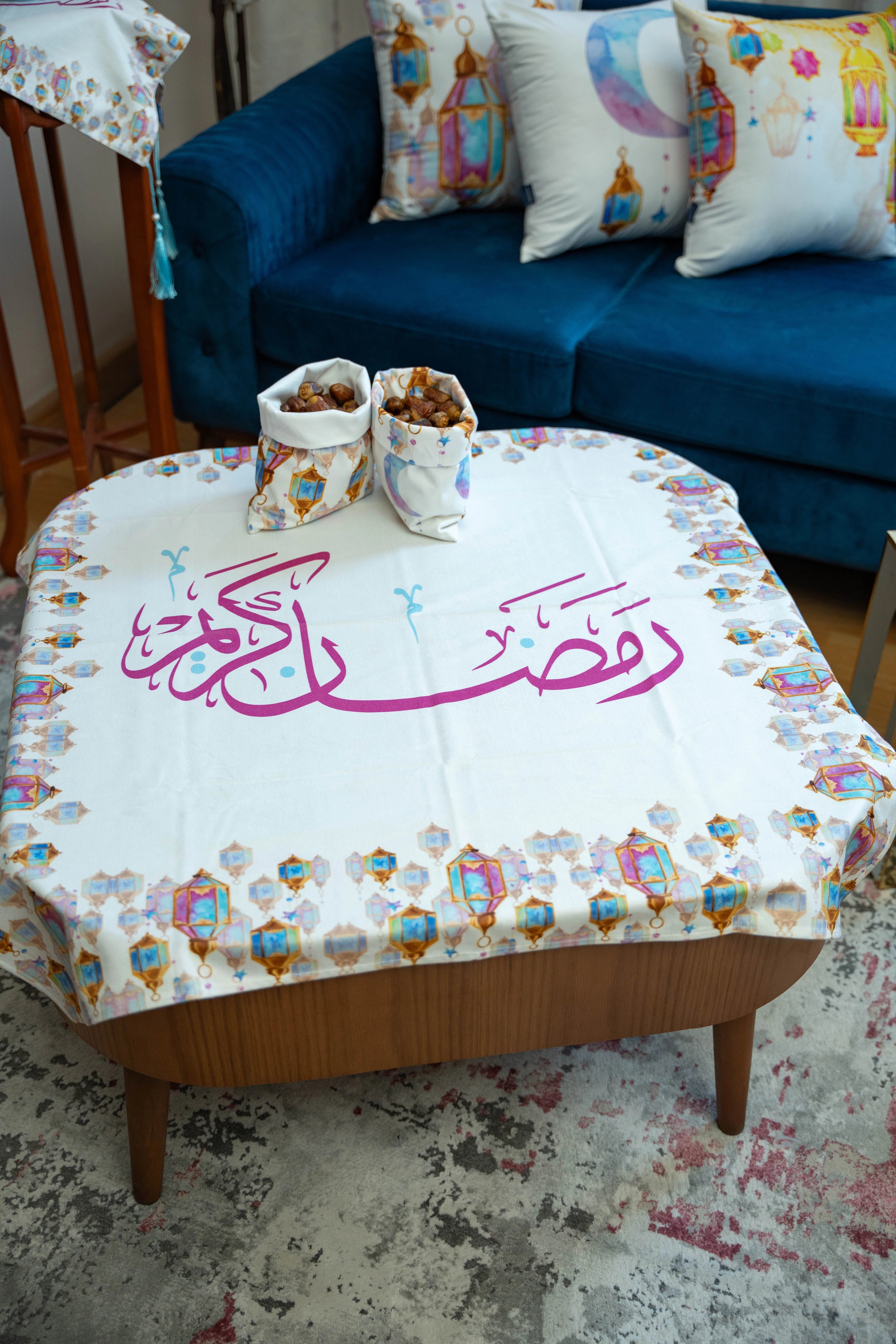 Our elegant and modern Ramadan Tablecloth designed to fit the largest tables. Ideal for a dining table for 6-8 people.